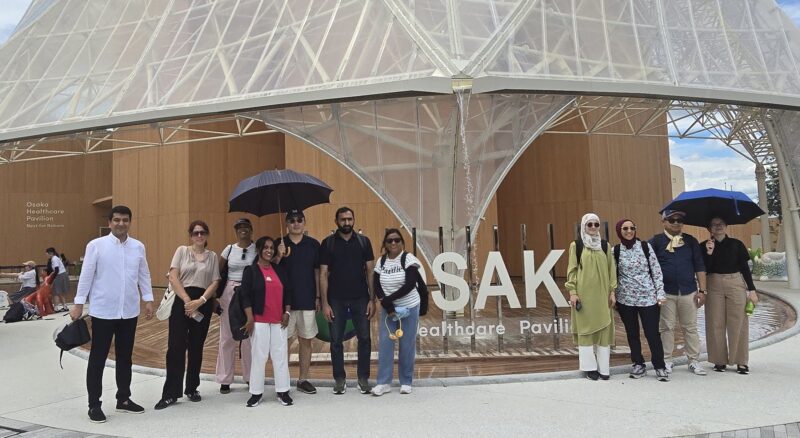 【大阪・関西万博 大阪ヘルスケアパビリオン前にて集合写真(MOBIO展示訪問時)】