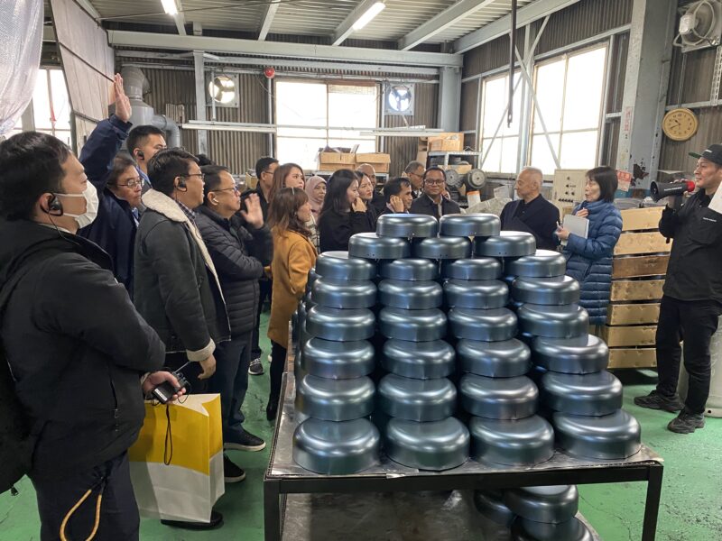 【大阪の中小企業にて製造工程を見学中の参加者】